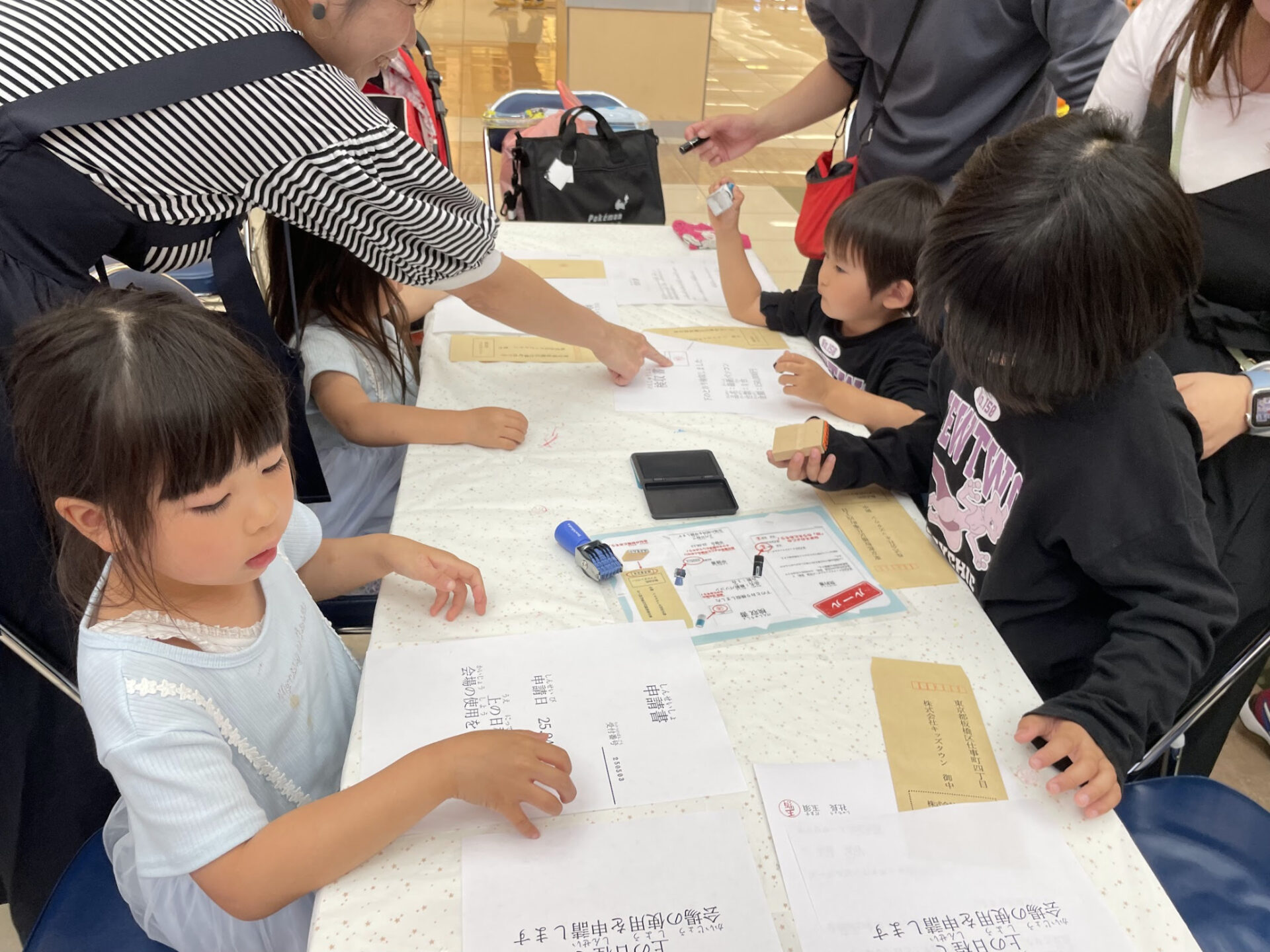 今回、イオンタウン富士南様では、キッズタウンビルダーズの中から、はんこの達人(事務職体験)とパニックレストラン(サービス職体験)を実施しました。